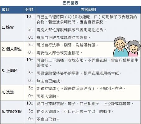 ◆工具一:日常生活活動功能評估ADLs (台灣常用的是巴氏量表)