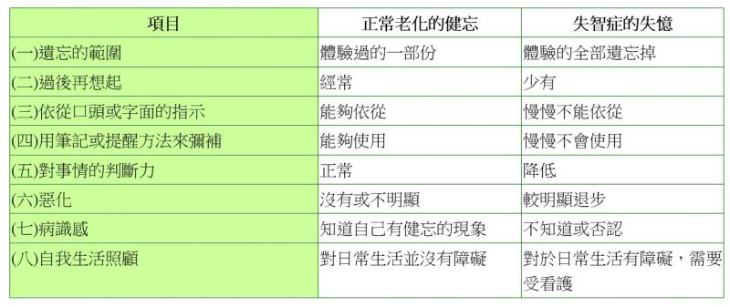 四、如何區別正常老化的健忘及失智症的病態失憶