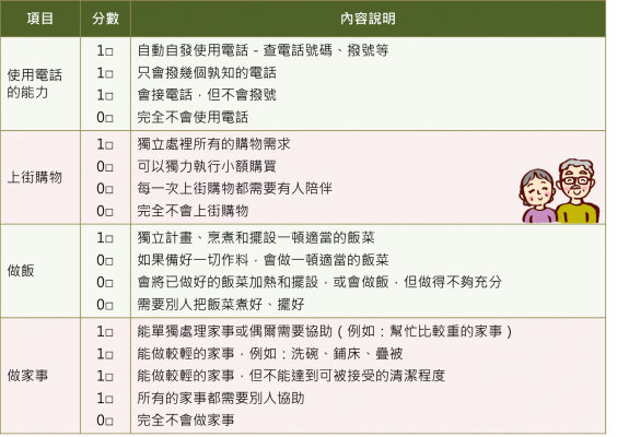 ◆工具二:工具性日常生活活動功能評估 IADLs